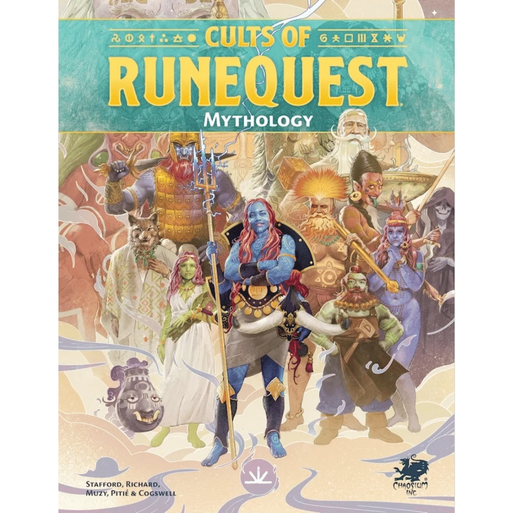Cults of RuneQuest: Mythology is part of the new Cults of RuneQuest sourcebook series for RuneQuest. It contains an indispensable history of the mythology of the storied and epic Bronze Age fantasy world of Glorantha.