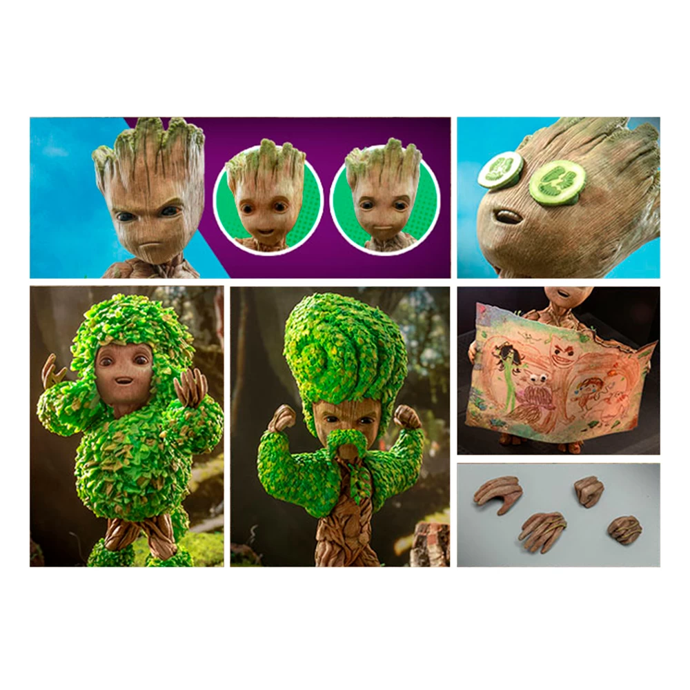 Skillfully crafted based on Groot’s appearance in the series, this 26cm tall Groot figure features three interchangeable face sculpts with laughing, smiling and furious expressions; sculpted tree texture on the specialised body. Clumps of greenery giving Groot alternate looks from leafy hairdos, body, to impressive bushy mustache and biceps.