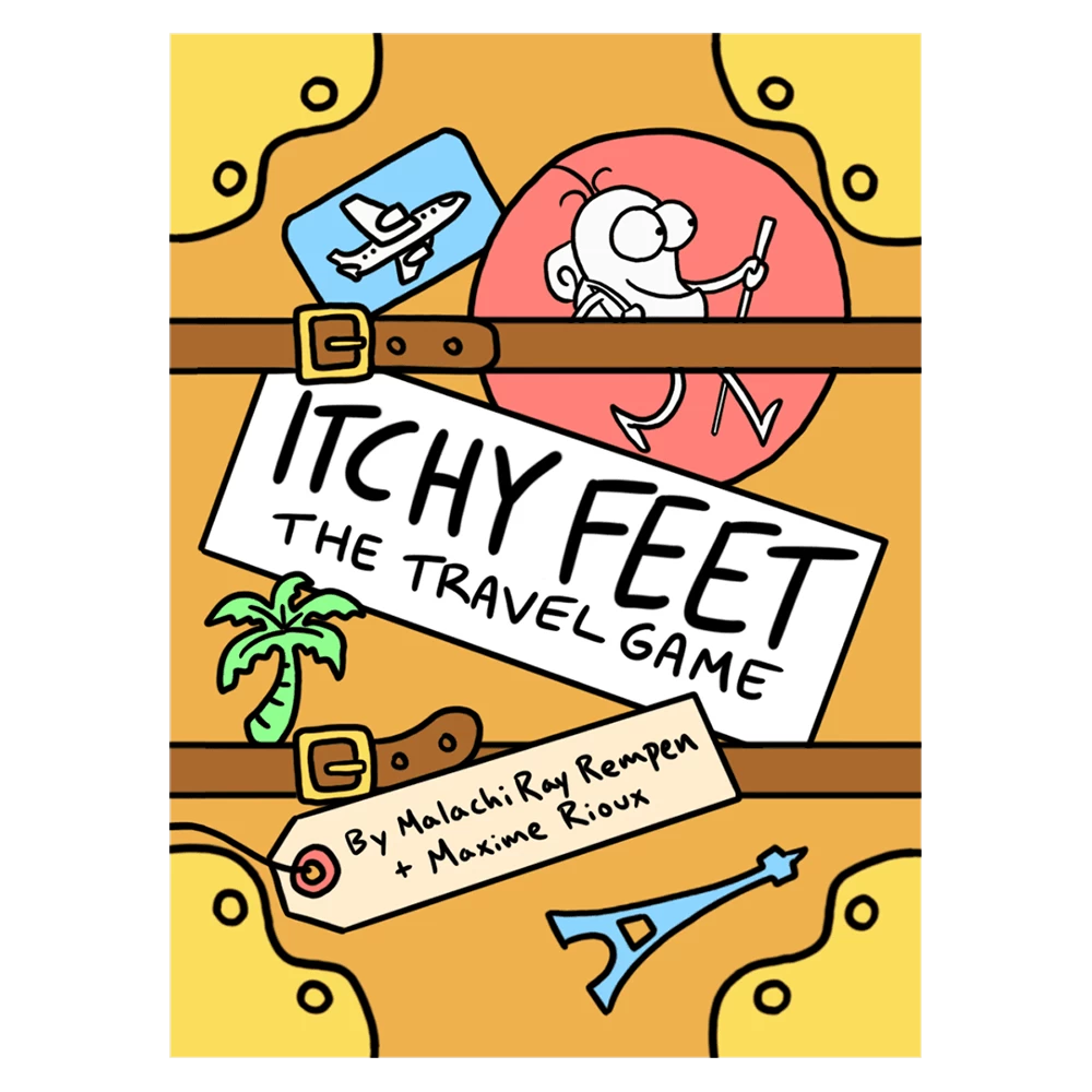 Itchy Feet: the Travel Game is a race. The goal is to be the first to “travel” to the country in the center of the table – but first each player must travel through their own country. Each country has three travel-related items required to travel there. Players need to gather these three items, and hold on to their passport, in order to travel – your hand is like your bag, and you’ve got to pack it right for your destination.