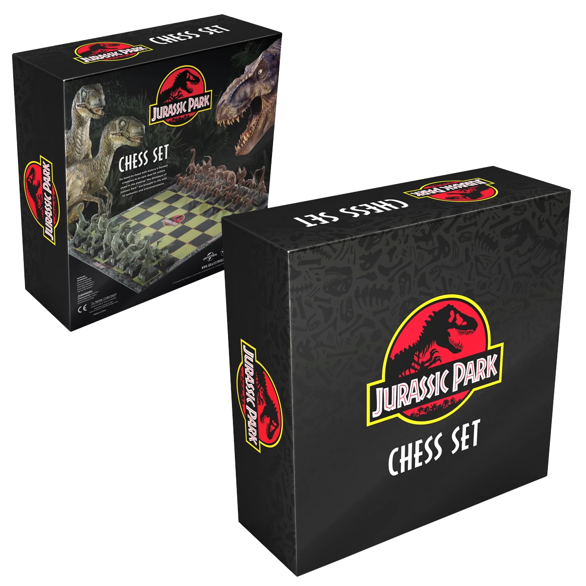 This Jurassic Park chess set includes 32 finely sculpted dinosaur pieces on a branded board.