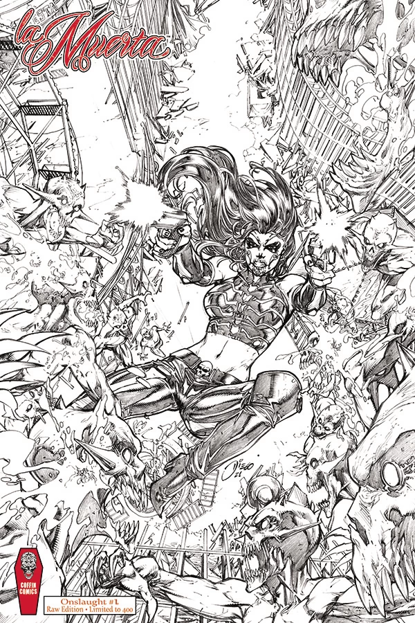 This special edition of La Muerta: Onslaught showcases the line art of Diego Bernard’s Premiere Edition cover!