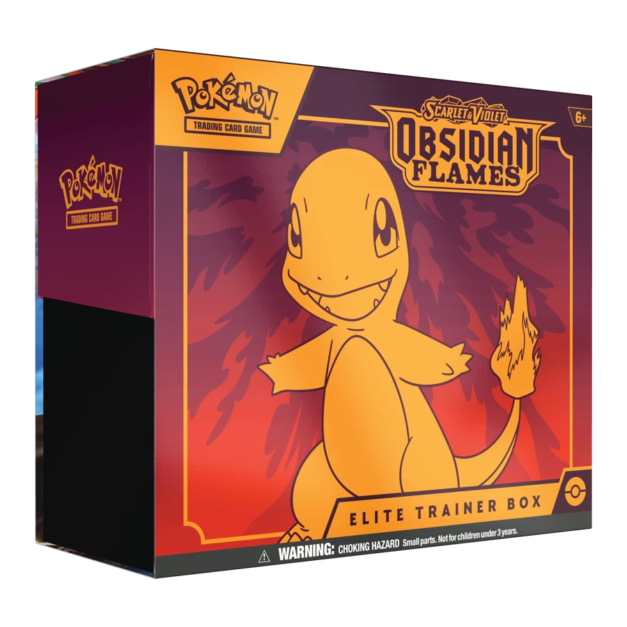 This set contains eleven Scarlet & Violet—Obsidian Flames booster packs (two more than a standard Elite Trainer Box), a pair of full-art foil promo cards featuring the always adorable Charmander, a selection of Energy cards to power up your deck, and a set of 65 card sleeves featuring Charmander to protect your new cards.