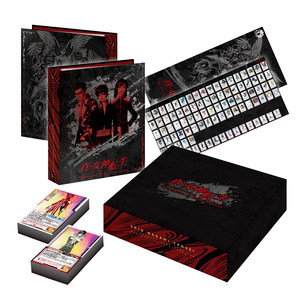 This collection is centred around the “”Shin Megami Tensei Trading Card Game drei Monument of Goddess”“, originally released in the early 2000s and features 94 redesigned cards from the original release.