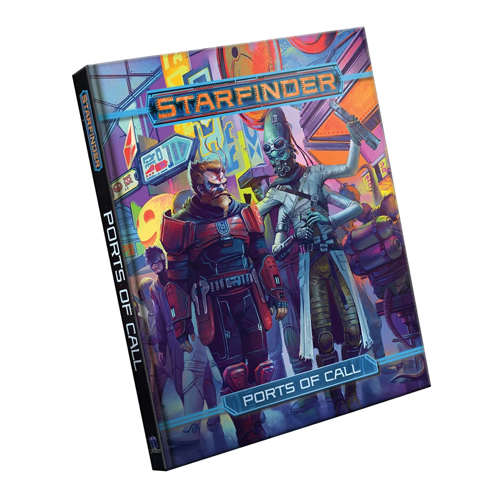 Ports of Call, the latest hardcover resource for the Starfinder Roleplaying Game, presents 10 highly detailed spaceports and settlements across all of space, from Drifter’s End on Absalom Station to the rebuilt megacity of Izadamar in the Scoured Stars to the to the wonders of the theme-park planet of Golarion World!
