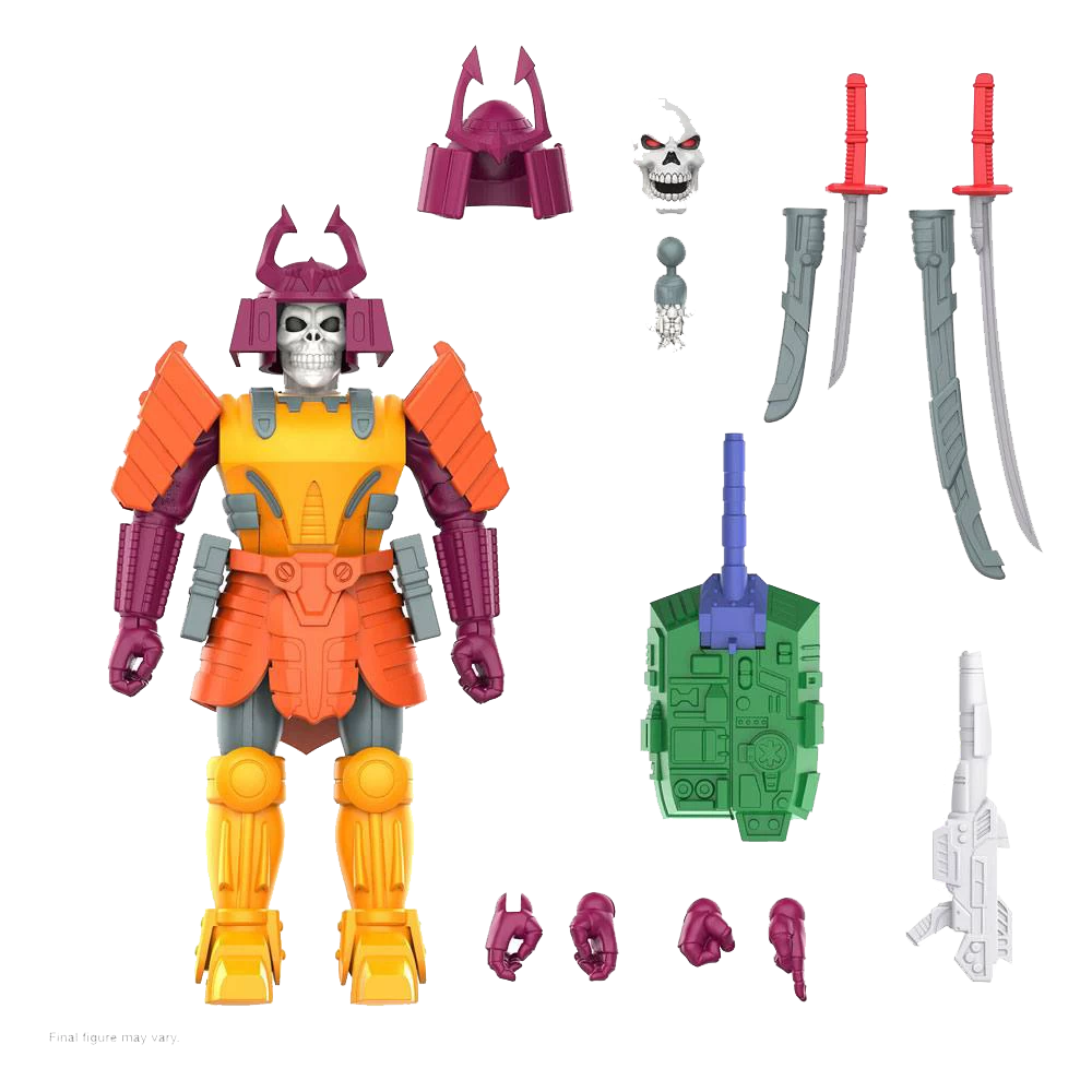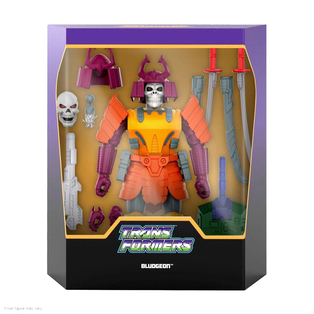 This highly-articulated Transformers ULTIMATES! figure of Bludgeon is inspired by the vintage toy and comics, standing 8.5” in his helmet and featuring interchangeable heads and hands along with an assortment of hand-to-hand combat weapons ready to mete out punishment upon any Autobots that cross him.