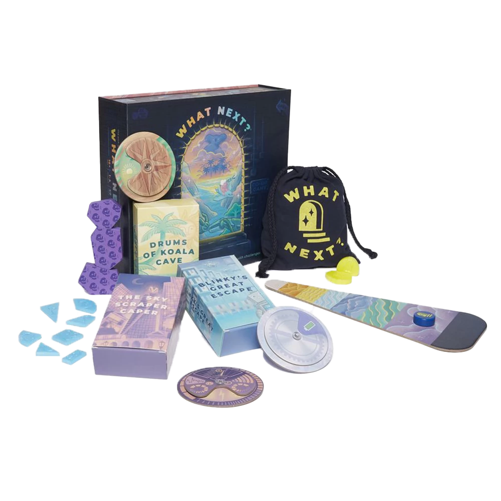 Unlike most adventure games, What Next isn’t just about picking the right path. Buried inside these adventures, you’ll find over 60 dexterity challenges, each one designed to stop you dead In your tracks. Want to grab a vine and swing from the trees? You’ll need to throw a card into the air and catch it first. Decide to walk over that old rope bridge? Well, first you’ll need to flick the wooden puck across the table, without it falling off. It’s important to master every mini-game you come across in these adventures — or you might not make it to the finish line.
